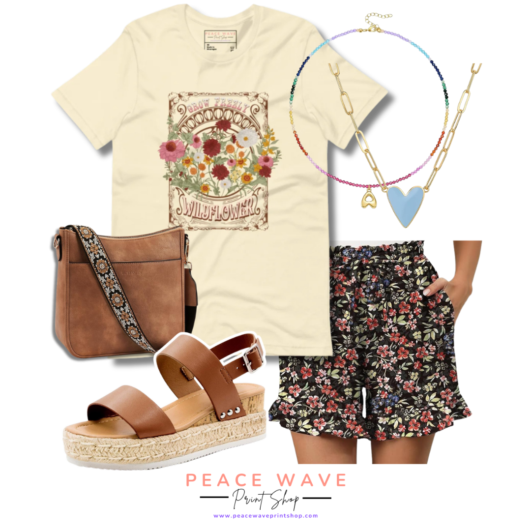 Grow freely, wildflower. This boho wildflower graphic tee is all about embracing your free spirit and blooming exactly where you're meant to. With a vintage-inspired floral design and soft, lightweight feel, it's the perfect go-to for your spring and summer outfits. Pair it with denim cutoffs and boots for a western vibe, or keep it casual with leggings and sneakers. This tee perfect for road-tripping, hitting the farmers market, or just soaking up the sunshine.
